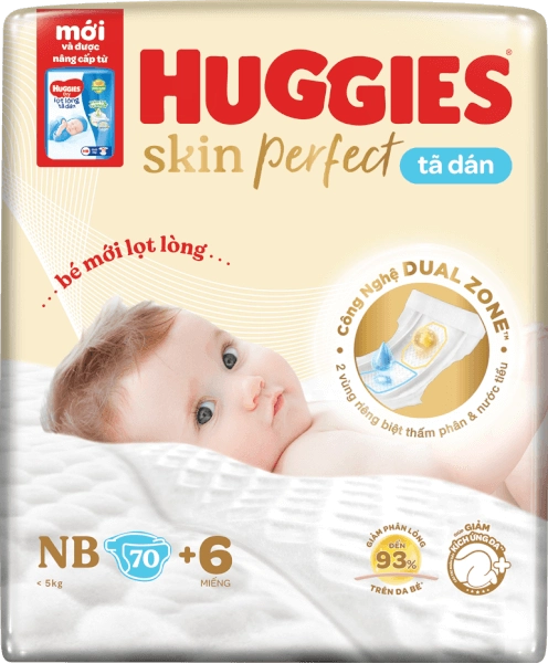 Tã dán lọt lòng Huggies Skin Perfect (Newborn, dưới 5kg, 70 miếng) (giao bao bì ngẫu nhiên)