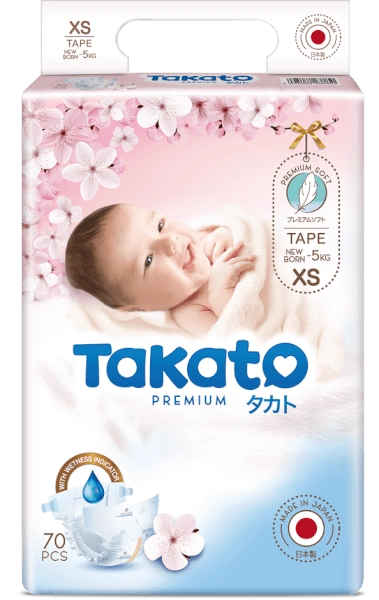 Tã dán Nhật Bản Takato siêu mềm mại (XS, 70 miếng)