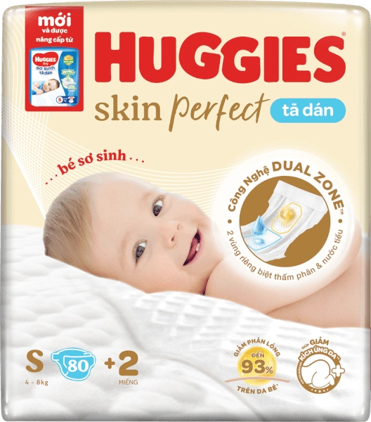 Combo 2 Tã dán sơ sinh Huggies Skin Perfect (S, 4-8kg, 80 miếng)