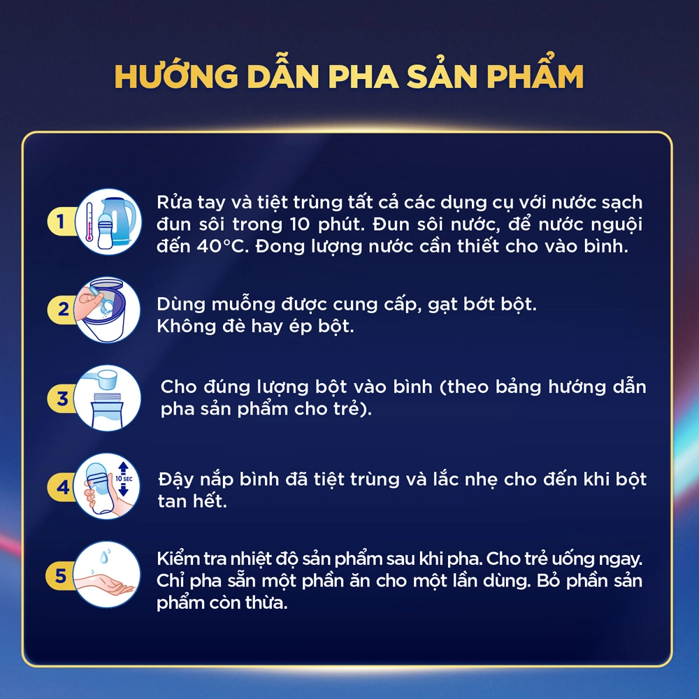 Pha 1 muỗng (7,3g) Aptamil Profutura CESARBIOTIK 1 với 50ml nước. Các tỷ lệ này chỉ được thay đổi khi có chỉ định của chuyên viên y tế. Pha sản phẩm không đúng cách có thể ảnh hưởng sức khỏe của trẻ. Chỉ pha sẵn một phần ăn cho một lần dùng. Sử dụng muỗng đo lường được cung cấp.