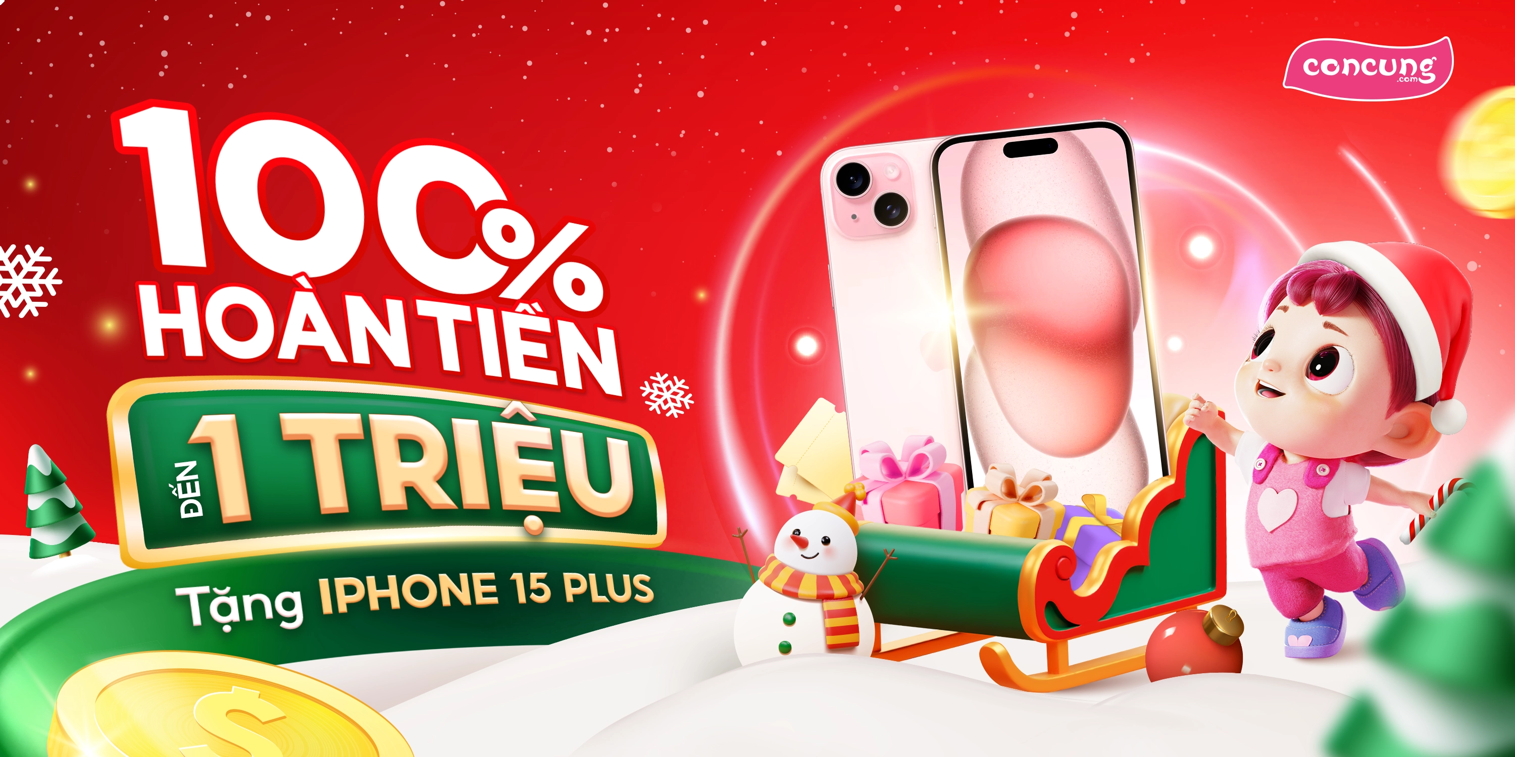 Tháng 12/2023, ba mẹ chỉ cần mua hàng tại cửa hàng mẹ và bé Con Cưng là 100% được hoàn tiền lên đến 1.000.000 đồng. Đặc biệt, Con Cưng còn tung ưu đãi khủng tặng thêm Iphone 15 plus màu hồng siêu xinh cho ba/mẹ may mắn nhất. Tham khảo ngay chi tiết chương trình trong bài sau, ba mẹ ơi!